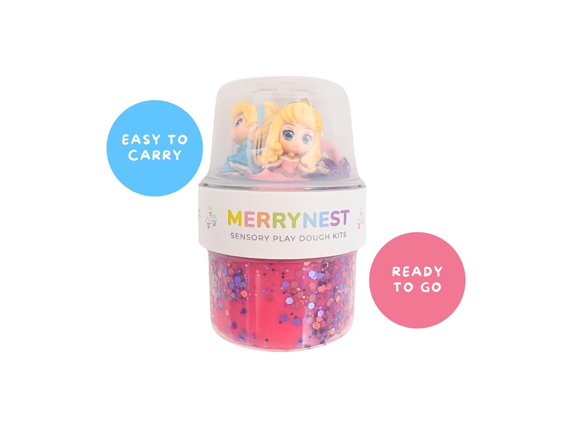 Our 2-Layer Princess Playdough To-Go Jar is designed to keep little hands busy, creative, and happyâwhether youâre at home, in the car, or out to eat. No mess, no fuss, just pure magical play that travels with you! đ